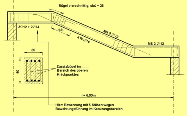 Grundsätze der Bewehrungsführung für geknickte Bauteile: